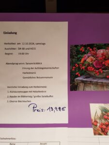 Die Damen 60 und die Herren 55 laden alle Mitglieder am 12.10.2024 um 19:00 Uhr zum gemütlichen Herbstfest ein, bei dem die beiden Teams Euch mit einem kulinarischen Menü verwöhnen wollen. Ein kurzer Rückblick über das Saisongeschehen wird erläutert und die Aufstiegsmannschaften werden geehrt.